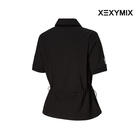 XEXYMIX WOVEN STRING COLLAR SHORT SLEEVE XGFST04H3 BLACK